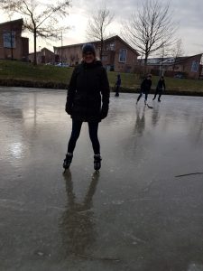 De volgende dag kwam een vriendin met haar dochters schaatsen en ben ik ook meegegaan. Iets langer dan gisteren en het ging ook wat beter. Het geeft z’n dubbel gevoel. Aan de ene kant ben ik heel trots dat ik het weer kan, maar aan de andere kant ben ik zoveel slechter in het schaatsen dat ik met weemoed terugdenk.