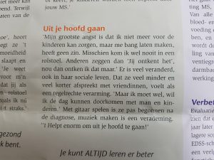 Soms lees ik een stukje in een blad waarin ik heel veel herken. Dit stukje wil ik graag met jullie delen, omdat het een deel van mijn leven omschrijft dat ik nog niet geaccepteerd hebt. Het stuk staat in de MS info van de maand mei en is geschreven door Anne.