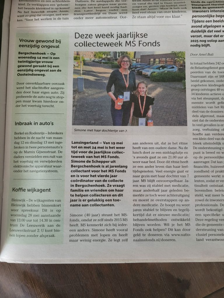 Zaterdag en zondag haalde ik de collectebussen weer op bij de andere collectanten in Bergschenhoek. Met totaal 16 mensen hadden we in Bergschenhoek €2150,- opgehaald en ik digitaal ook nog eens €1696,-. Wat een fantastische bedragen voor het MS-fonds en ik ben trots op iedereen die ons geholpen heeft met dit bedrag te bereiken.