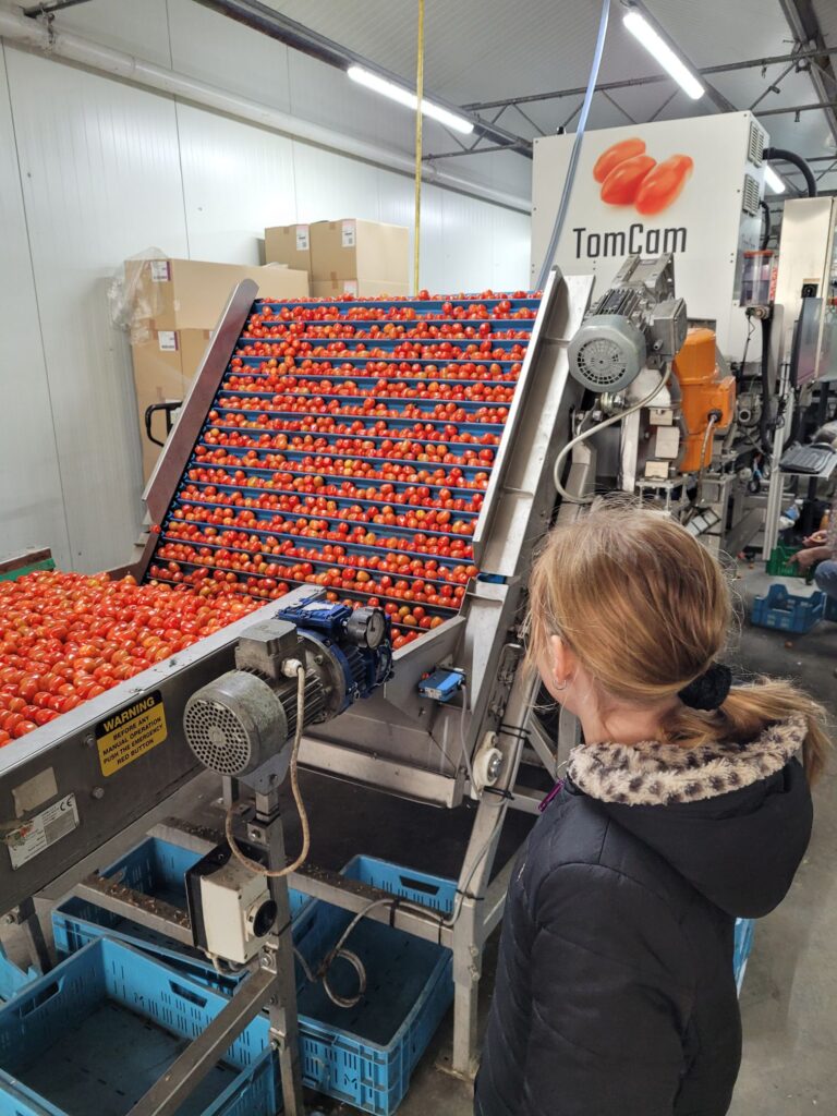 Onze dochter had eerder deze maand het uitje met haar klas naar de komkommerkas gemist, omdat deze samenviel met het Fenix museum. Ik had opgezocht dat ‘Kom in de kas’ vandaag was in Zevenhuizen. Er werd aangegeven om op de fiets te komen ivm beperkte parkeergelegenheid, dus ik ging samen met onze dochter op de scooter. Een mooie tocht langs de Rotte en de Rottemeren van 30 minuten. We startten bij een gerberakas. Dit zijn mijn lievelingsbloemen, dus heel gaaf om een hele kas met veel verschillende soorten te zien. Hierna gingen we naar een komkommerkas. In de kas waren de planten helaas net pas geplant, maar ze hadden uit een andere verwarmde kas wel komkommers, zodat onze dochter toch het sorteerproces kon zien. Ditzelfde gold bij de kas van de snoeptomaten. Hier werden de snoeptomaten gelijk verpakt in plastic bekers en bakken, waarbij de kilobakken direct gelabeld werden voor AH. Superleuk om allemaal te zien en in de kassen spraken we lieve medewerkers die mijn/onze vragen beantwoordden. Op de terugweg reden we bij mijn roeivriendinnen door de straat, dus daar belden we nog kort aan voor een praatje.