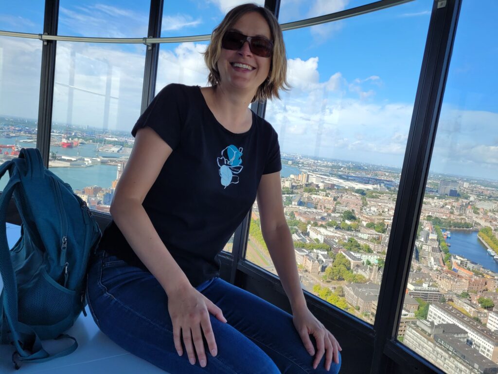Nu de laatste week er bijna op zat zonder een uitje, begon het bij mij te kriebelen om nog wat leuks te gaan doen. Ik vroeg mijn zus of ze zin had om met haar kinderen mee te gaan naar de Euromast en daar om de hoek te gaan midgetgolfen. Dat wilde ze wel, dus haalden mijn dochter en ik hen om 9.45 uur op na het zwemmen van onze dochter. We gingen eerst naar de Euromast, want die was al open. Wat was dat interactief geworden met een korte 3d film over het water in Nederland en de bouw van de Euromast. Hierna gingen we met de lift naar boven en direct door naar de Euroscoop. Ik was jaren geleden wel op het uitkijkplatform geweest, maar zo ronddraaiend in de Euroscoop was wel een gave beleving. Ook waren er veel mensen aan het abseilen vandaag. Dat was ook leuk om even naar te kijken.