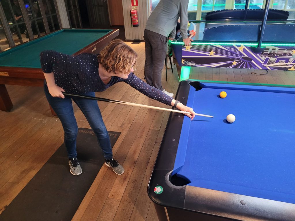 Donderdagochtend ging ik met onze dochter zwemmen, maar ik vond het water aan de koude kant, dus heb een tijd op de kant gezeten terwijl onze dochter zich heerlijk vermaakte met haar Zeemeerminstaart. ’s Middags gingen we bij het restaurant airhockey spelen en er stond ook een pooltafel. Dat was megalang geleden voor ons, maar het was erg leuk om te doen. Ook onze dochter vond het interessant om te leren. We namen frites van de snackbar mee. In de tuin konden we schommelen en frisbeeden we veel. Ook wandelden we nog naar het naastgelegen Capfun waar onze dochter nog een tijdje speelde.